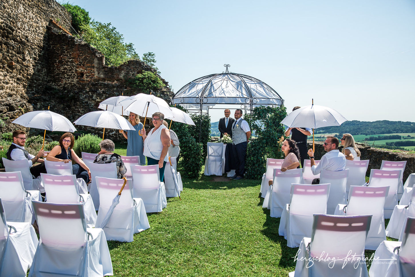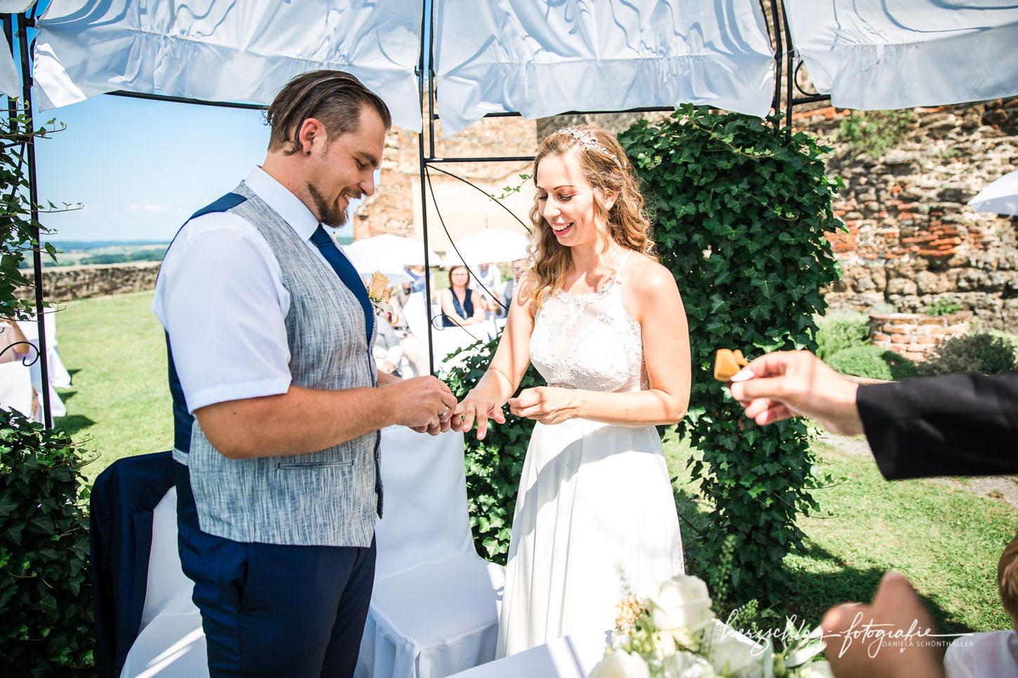 Sie habe es sich aber nicht nehmen lassen, auf der Burg Güssing, bei traumhaften Wetter ihre Liebe vor der engsten Familie zu besiegeln.